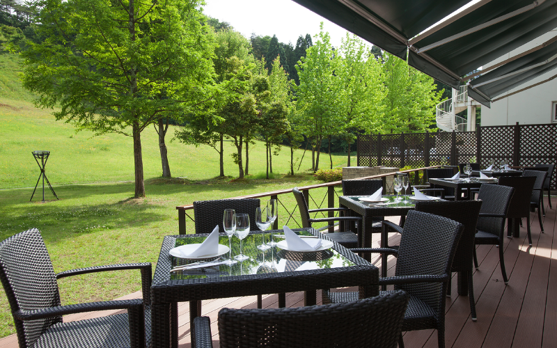 (Facilities) Onsen, sauna, banquet hall, conference room, restaurant, lobby, shop, farm, pool